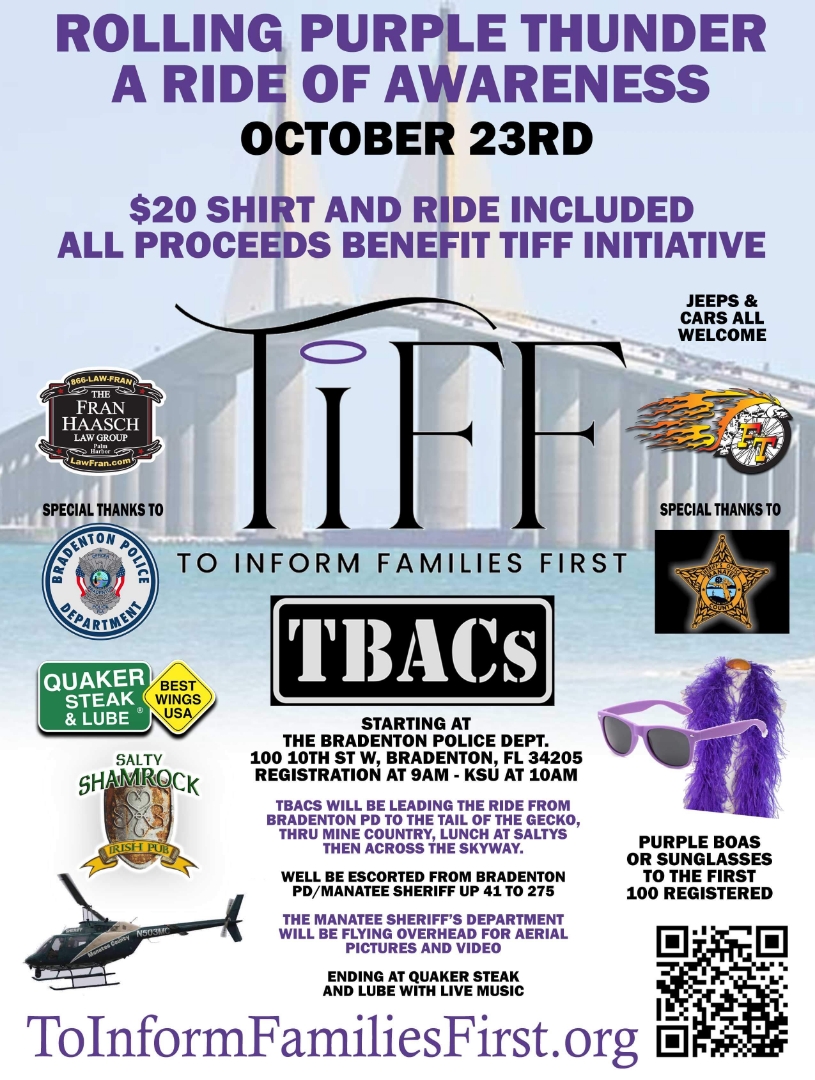 The Tampa Bay Area Cruisers (TBACS) will be leading the ride from the Bradenton Police Department to the Tail of The Gecko, through mine country. Lunch will be held at Salty Shamrock then the ride will continue across the Sunshine Skyway bridge. The ride will end at Quaker Steak and Lube with live music!